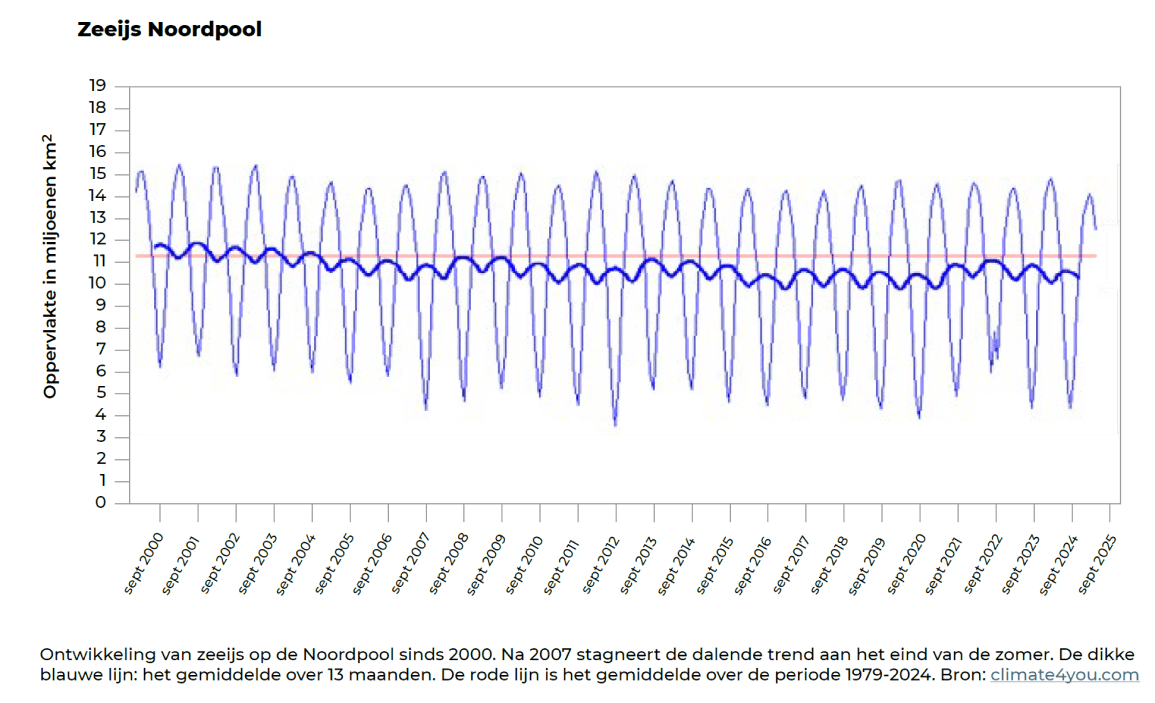 Vanaf 2007 begonnen Al Gore, wiens film An Inconvenient Truth in 2006 uitkwam, en diverse klimaatwetenschappers te voorspellen dat de Noordpool weldra in de zomers ijsvrij zou zijn. Die voorspellingen kwamen niet uit. Bedenk dat de Noordpool een oceaan is waarin slechts een vrij dunne laag (1 tot 4 meter) ijs drijft. In de zomer vallen er open plekken in het ijs en eind van de zomer ligt er het minste ijs. Na 2007 stagneerde de afname van zeeijs in de zomer. Er ligt wel minder zeeijs dan dertig jaar geleden, maar de vraag is hoe relevant dit is voor planeet Aarde. Zeeijs ligt al in zee en draagt bij smelt niet bij aan zeespiegelstijging. Jarenland werd gesuggereerd dat de ijsbeer kon gaan uitsterven bij verdere afname van zeeijs, omdat ijsberen jagen vanaf het ijs. Maar uit allerlei tellingen blijkt de populatie juist sterk gegroeid te zijn de afgelopen decennia, vooral nadat de jacht op de ijsbeer internationaal aan banden was gelegd.