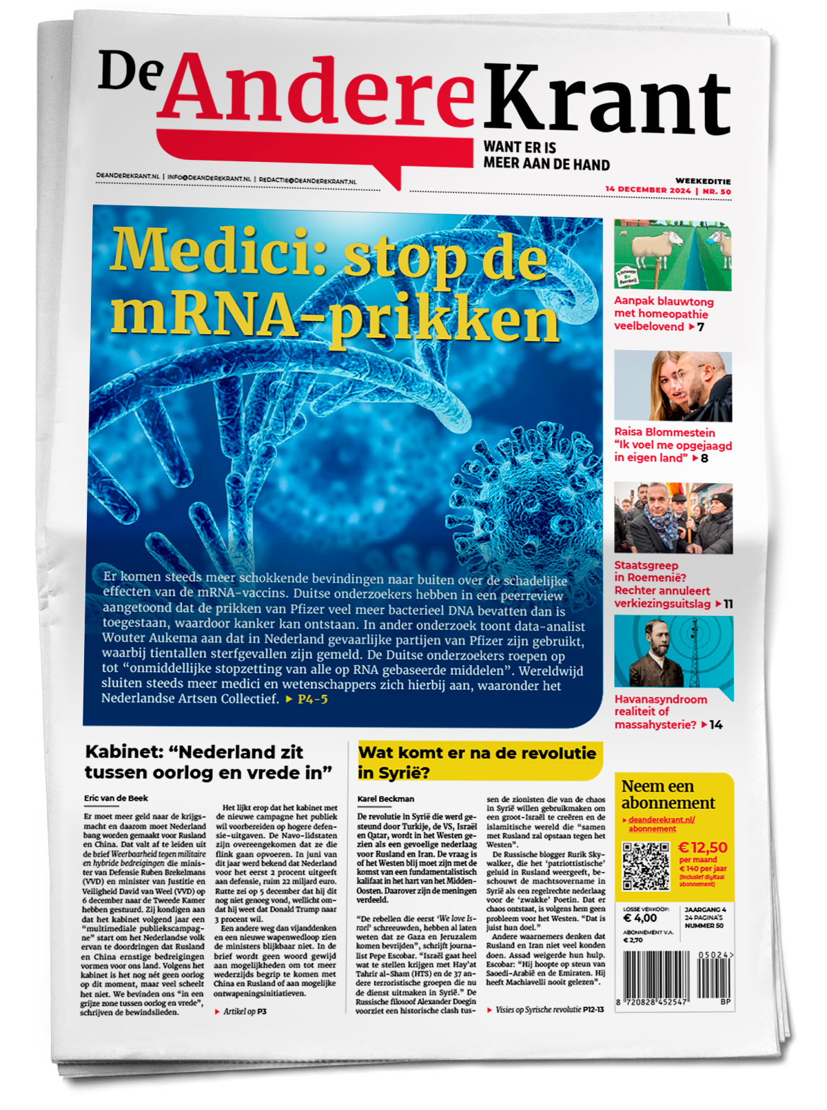 Het Nederlandse medialandschap is mede door een sterke concentratie van eigendom (overheid en grote financiële partijen) uiterst uniform en eenzijdig geworden. Binnen een bepaalde bandbreedte is debat geoorloofd, maar fundamentele kritiek op de gevestigde orde is nauwelijks mogelijk. Wie afwijkt van die norm, wordt weggezet als complotdenker of krijgt een ander stigma op zich geplakt. Bij De Andere Krant hebben we de wijsheid en waarheid weliswaar niet in pacht maar wij laten ons geen taboes aanpraten en geloven in een werkelijk vrij en pluriform debat. We zijn altijd aanspreekbaar op wat we publiceren en horen het graag als we er toch blijken naast te zitten.